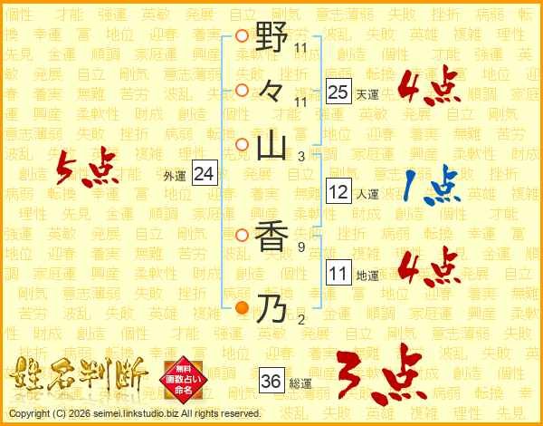 野々山香乃さんの天運は25画の4点!