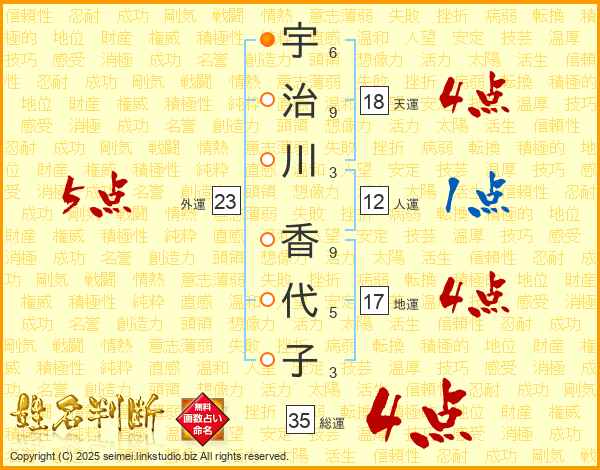 宇治川香代子さんの総運は35画の4点!