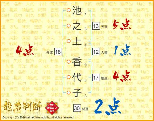 池之上香代子さんの天運は13画の5点!