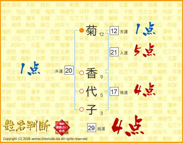 菊香代子さんの総運は29画の4点!