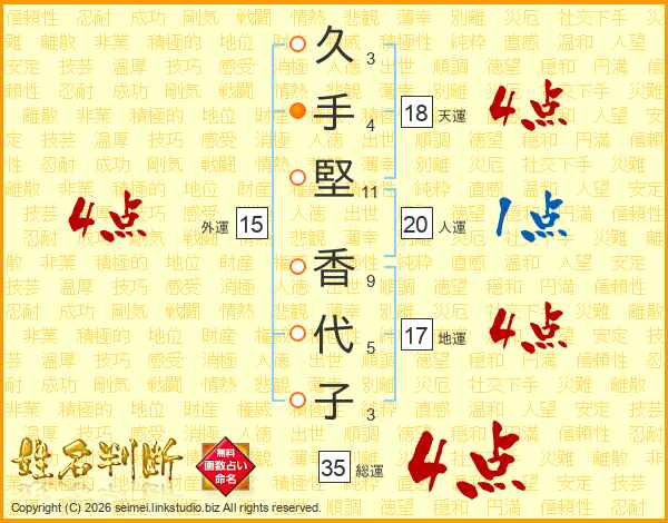 久手堅香代子さんの天運は18画の4点!