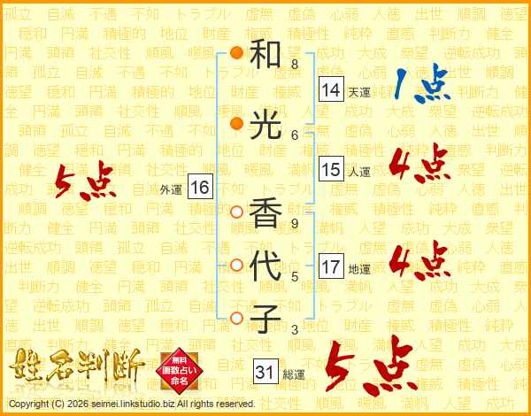 和光香代子さんの総運は31画の5点!