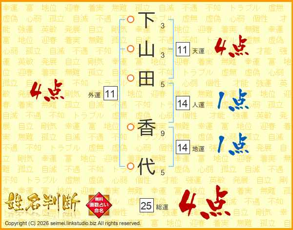 下山田香代さんの総運は25画の4点!