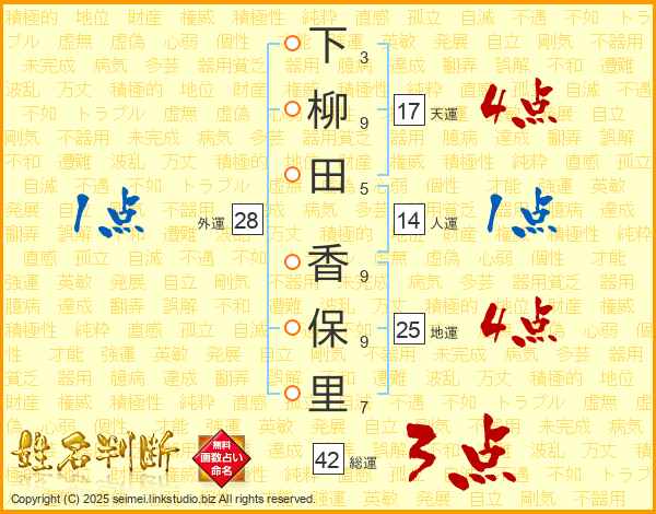 下柳田香保里さんの地運は25画の4点!
