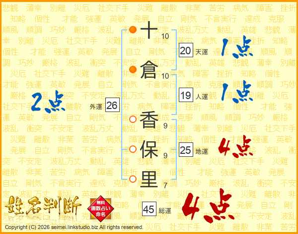 十(10画)倉(10画) 香(9画)保(9画)里(7画)