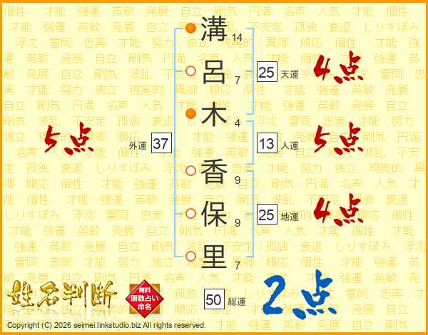 溝(14画)呂(7画)木(4画) 香(9画)保(9画)里(7画)