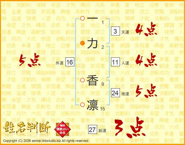 一力香凛さんの外運は16画の5点!