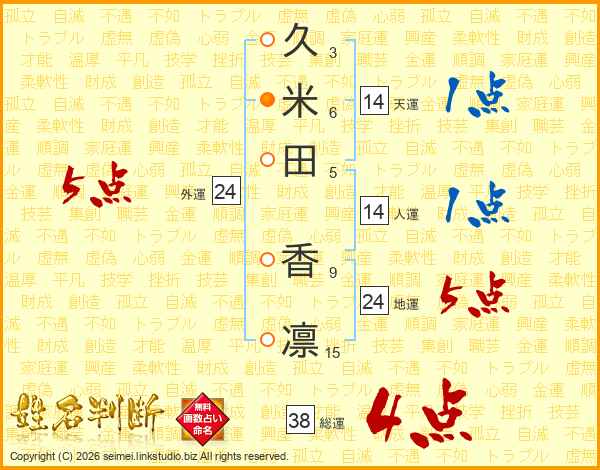 久(3画)米(6画)田(5画) 香(9画)凛(15画)