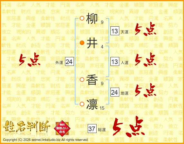 柳井香凛さんの総運は37画の5点!