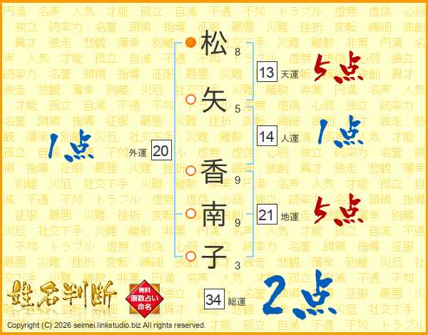 松矢香南子さんの天運は13画の5点!