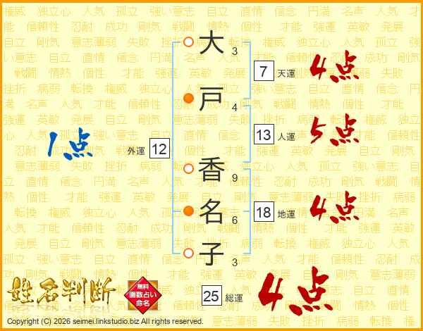 大戸香名子さんの総運は25画の4点!