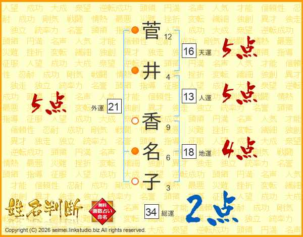 菅井香名子さんの外運は21画の5点!