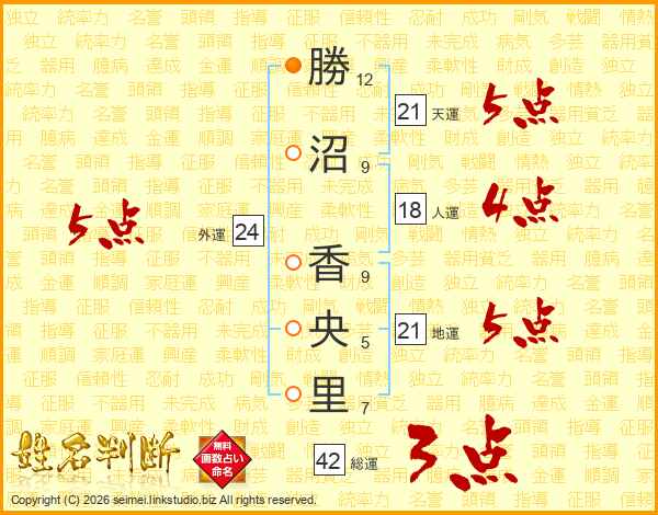 勝沼香央里さんの天運は21画の5点!