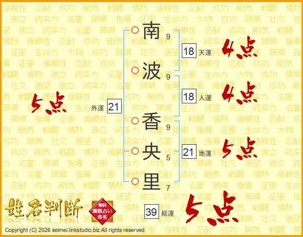 南波香央里さんの総運は39画の5点!