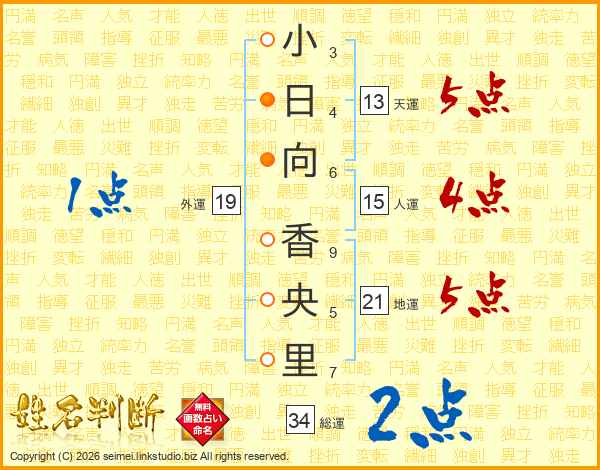 小日向香央里さんの総運は34画の2点!