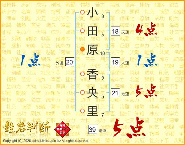 小田原香央里さんの総運は39画の5点!