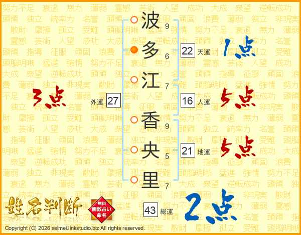 波多江香央里さんの総運は43画の2点!