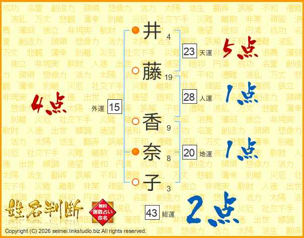 井藤香奈子さんの総運は43画の2点!