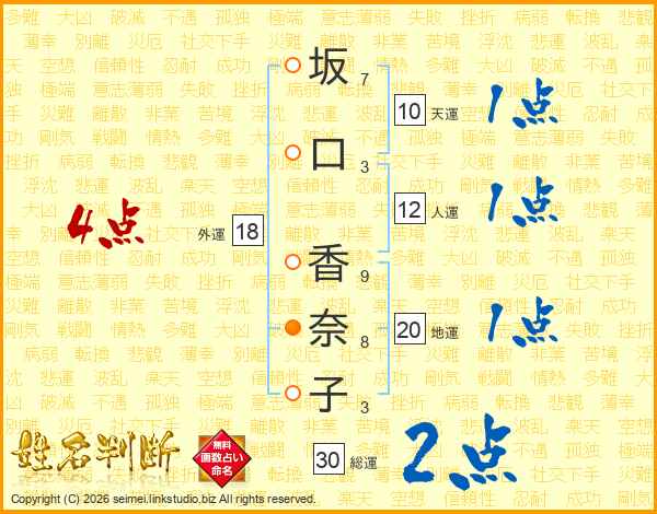 坂口香奈子さんの総運は30画の2点!