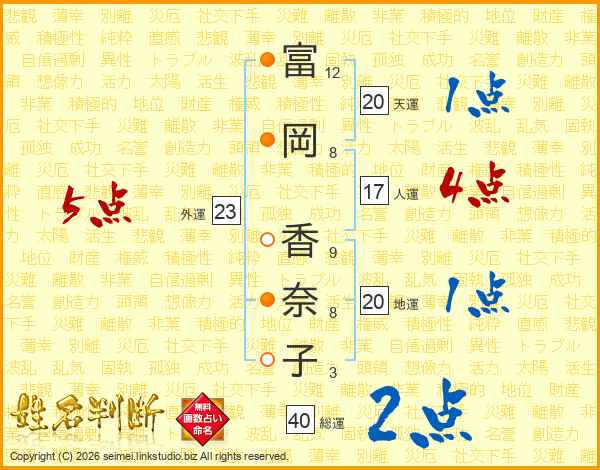 富岡香奈子さんの外運は23画の5点!