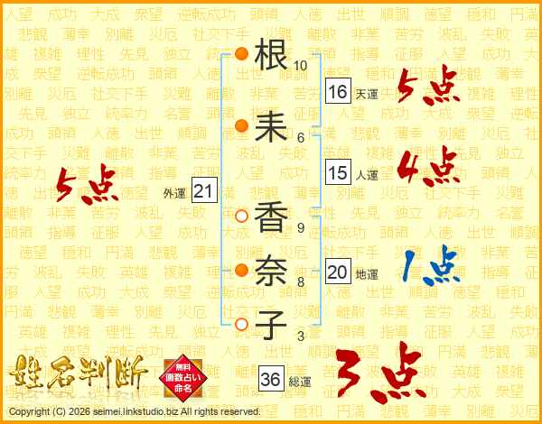 根耒香奈子さんの外運は21画の5点!