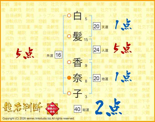 白髪香奈子さんの総運は40画の2点!