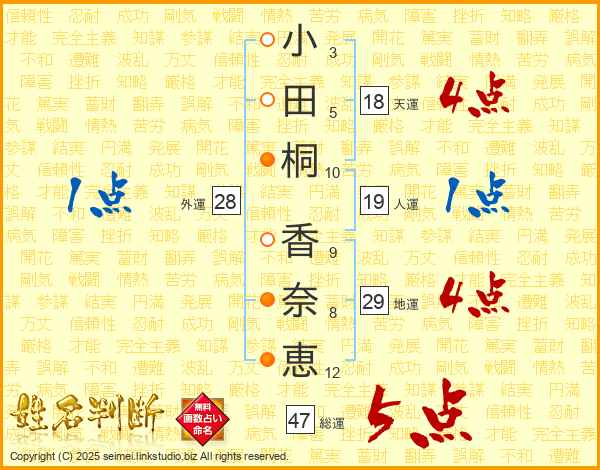 小田桐香奈恵さんの総運は47画の5点!