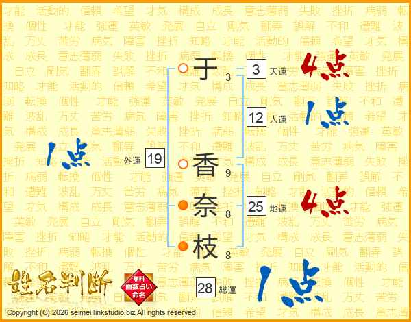于香奈枝さんの地運は25画の4点!