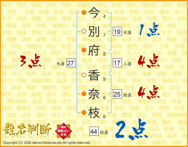 今別府香奈枝さんの総運は44画の2点!
