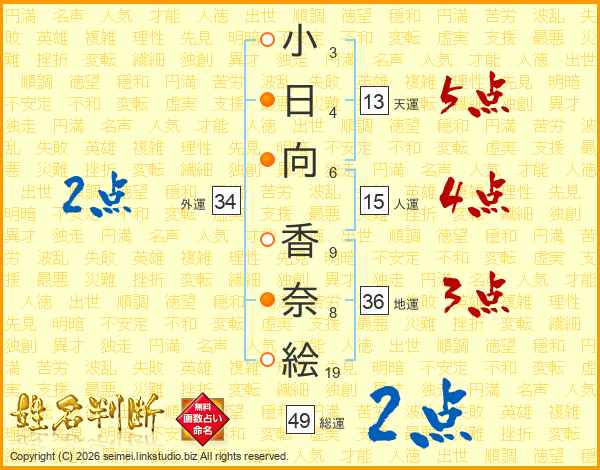 小日向香奈絵さんの総運は49画の2点!