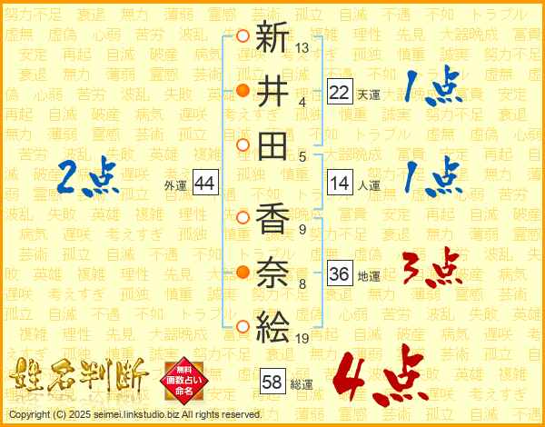 新井田香奈絵さんの総運は58画の4点!