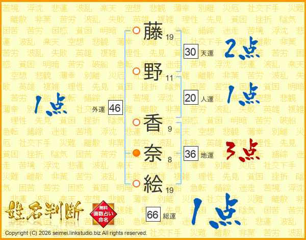 藤野香奈絵さんの総運は66画の1点!