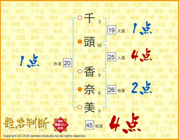 千頭香奈美さんの人運は25画の4点!