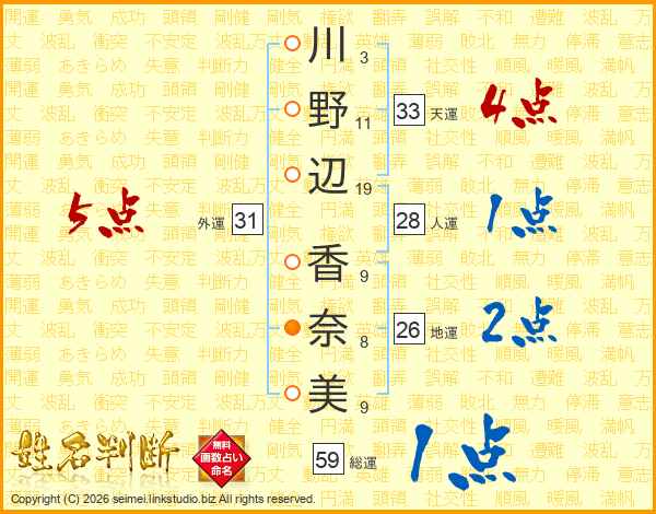 川野辺香奈美さんの天運は33画の4点!