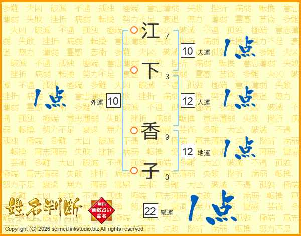 江下香子さんの総運は22画の1点!