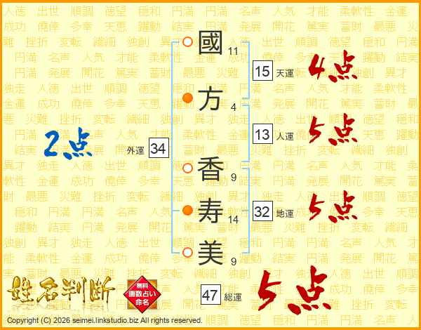 國方香寿美さんの総運は47画の5点!