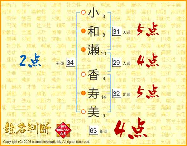 小和瀬香寿美さんの総運は63画の4点!