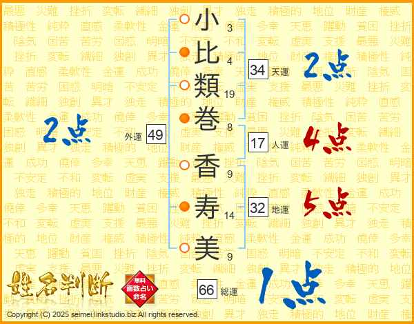 小比類巻香寿美さんの外運は49画の2点!