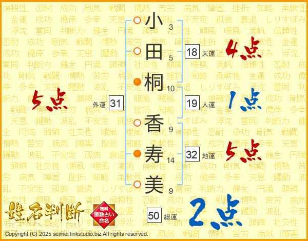 小田桐香寿美さんの総運は50画の2点!