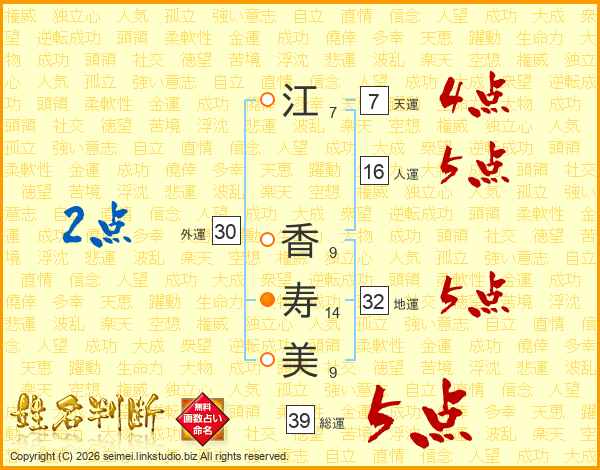 江香寿美さんの総運は39画の5点!