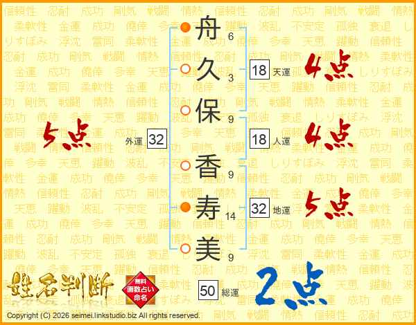 舟久保香寿美さんの外運は32画の5点!