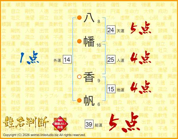 八幡香帆さんの総運は39画の5点!
