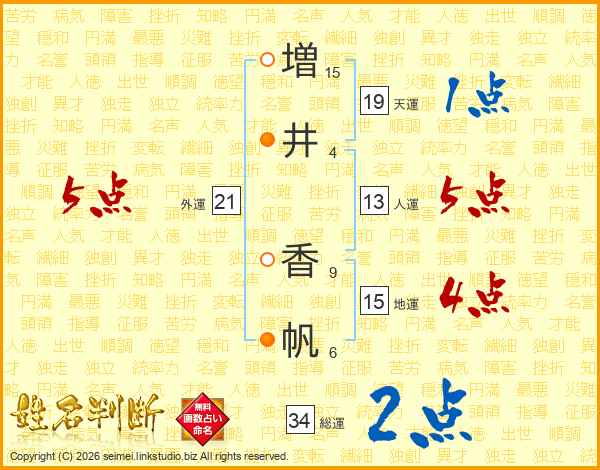 増(15画)井(4画) 香(9画)帆(6画)