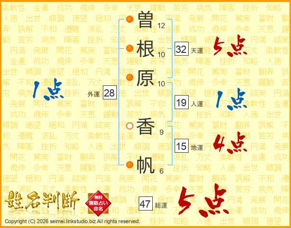 曽根原香帆さんの総運は47画の5点!