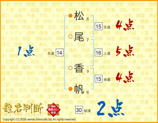 松尾香帆さんの総運は30画の2点!