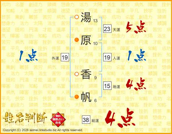 湯原香帆さんの総運は38画の4点!