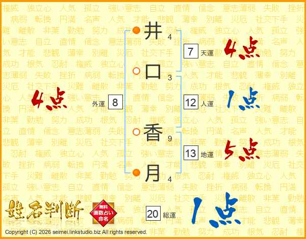井(4画)口(3画) 香(9画)月(4画)