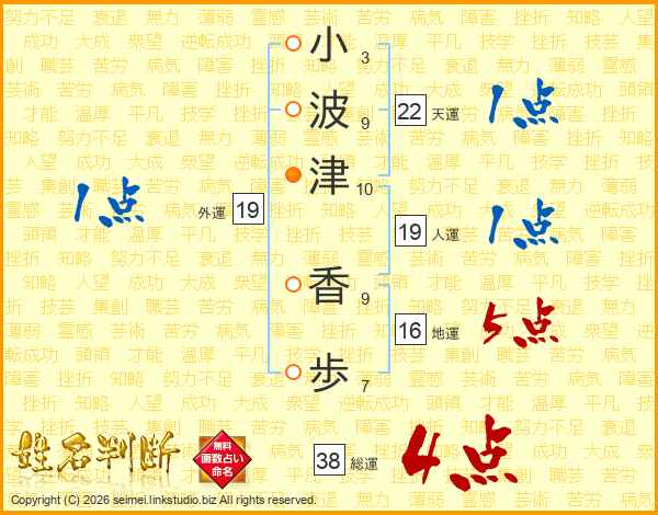 小(3画)波(9画)津(10画) 香(9画)歩(7画)