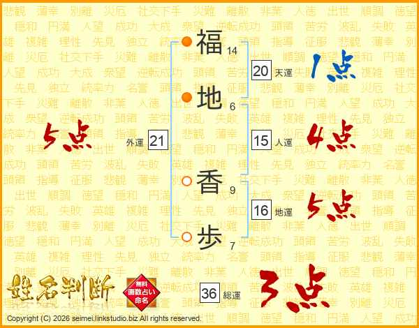 福地香歩さんの外運は21画の5点!