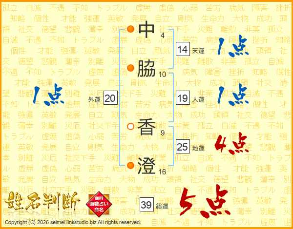 中脇香澄さんの総運は39画の5点!